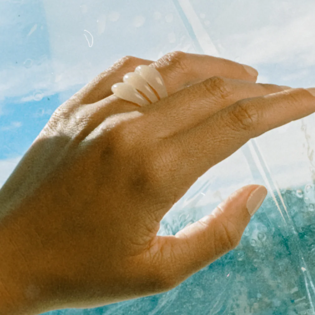 For when gold and silver get boring. The Jelly Ring in Haze is crafted in our lightweight jelly white acetate. Perfect for layering, stacking, or can be worn alone.